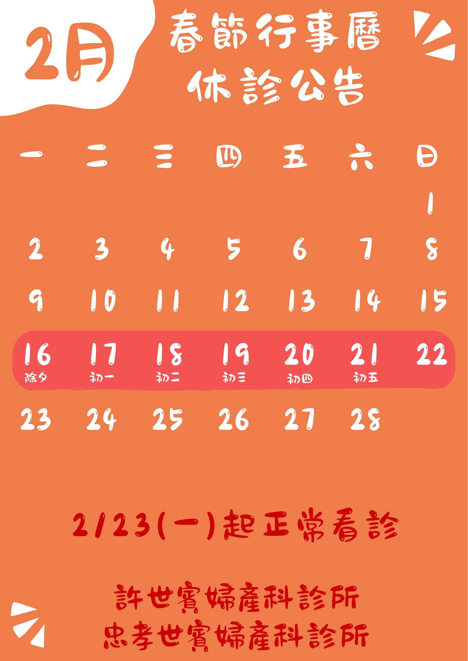 春節休診